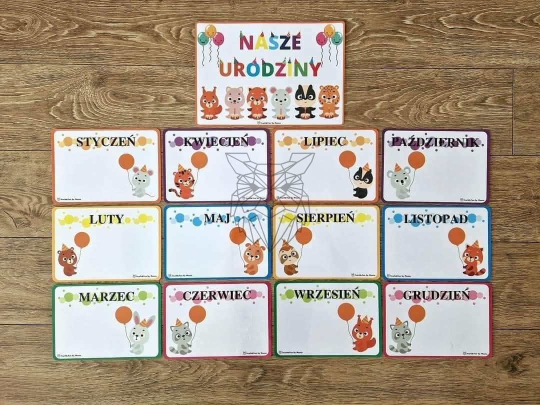 Napis + 12 plansz z miejscem na imiona dzieci